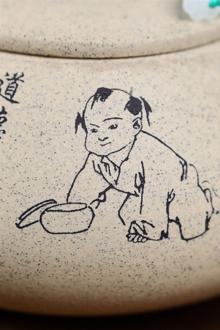 捂灰朱泥琺瑯彩燒虛扁茶壺POT7453