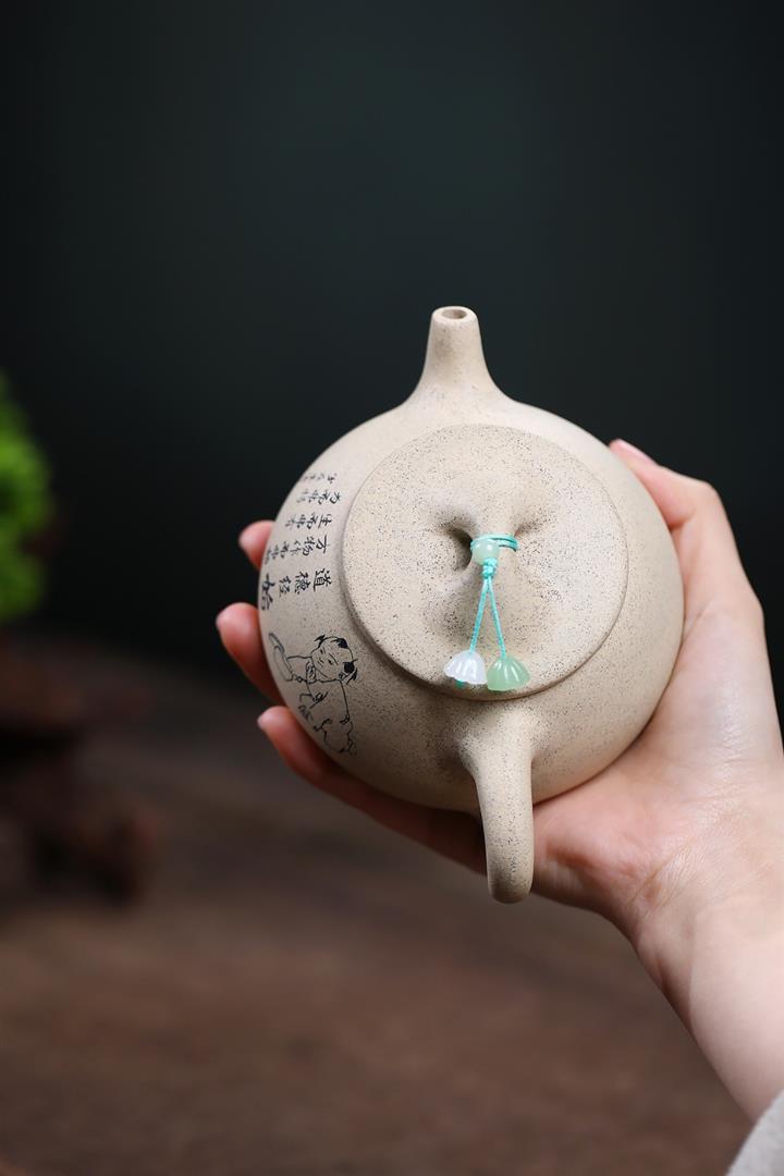 【作品介紹】此款壺形線條流暢,壺把,壺嘴,壺身壹氣呵成栩栩如生,是收藏把玩的好壺,泥料色澤古樸典雅,日久使用,漸露鋒芒,養成變化快,溫潤莊重,用其泡茶,使用的年代久,壺身就溫潤,泡出來的茶湯也就醇郁芳馨。