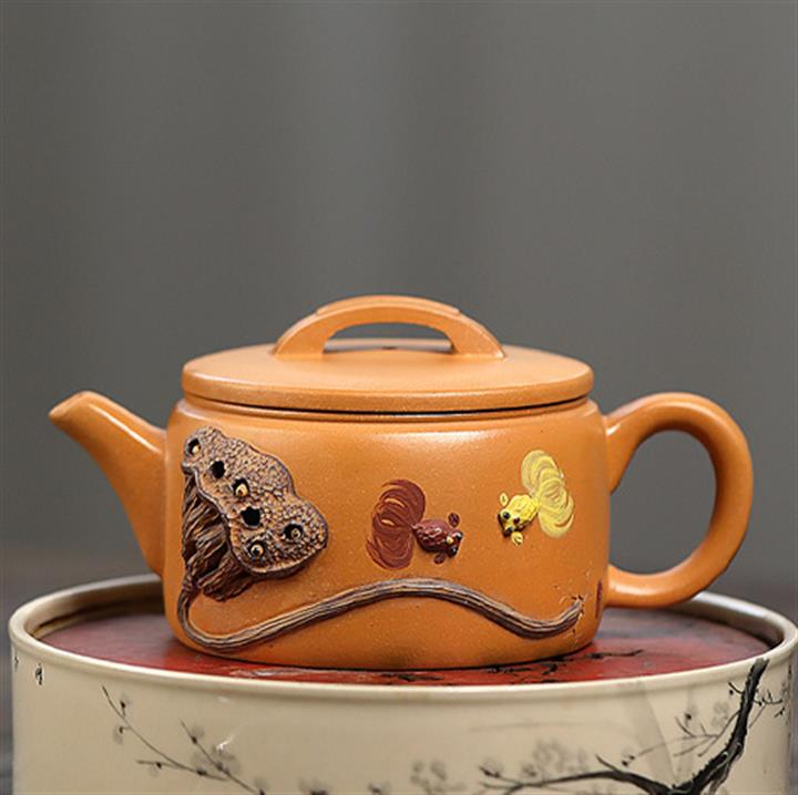235cc原礦黃金段泥泥繪蓮蓬漢瓦茶壺POT8143