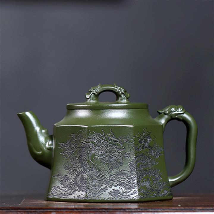 350cc原礦民國綠泥八方龍權泡茶壺POT8891