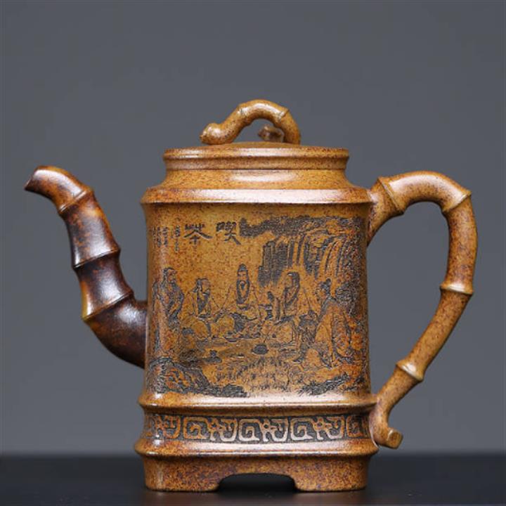 300cc龍骨金砂特高溫燒四方竹段泡茶壺POT9649