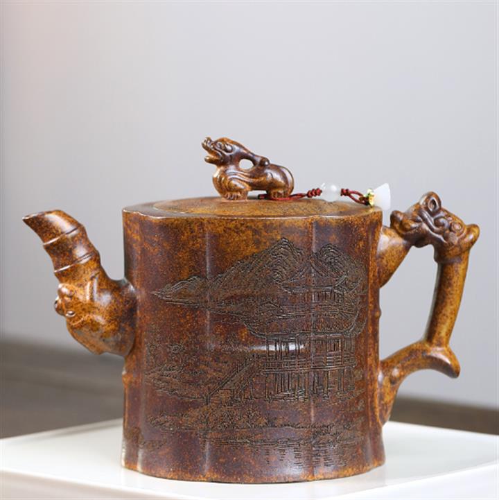 520cc原礦龍骨金砂特高溫龍鳳雲築泡茶壺POT9651