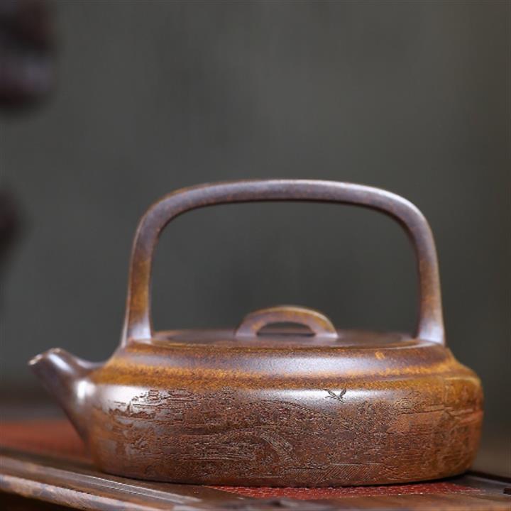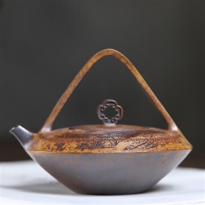 350cc龍窯高溫柴燒龍骨金砂提梁泡茶壺POT9503
