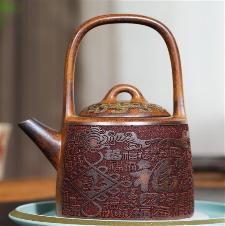 290cc龍骨金砂變色鳳鳴百福古秦權提梁壺POT8245