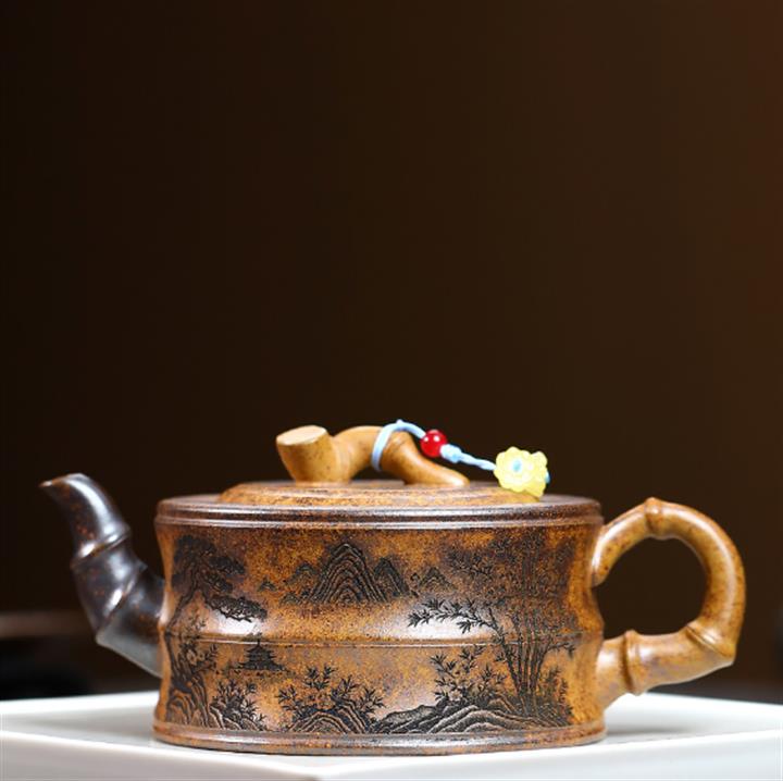 400cc原礦龍骨金砂柴燒柴窯竹段泡茶壺POT9290