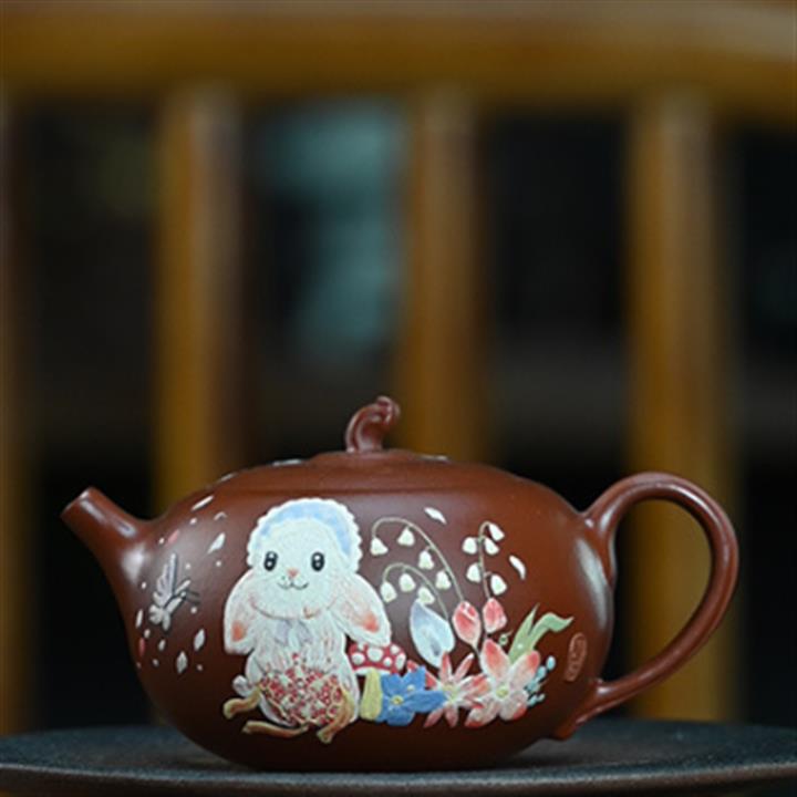 150cc原礦朱泥純玉兔扁西施茶壺POT8449