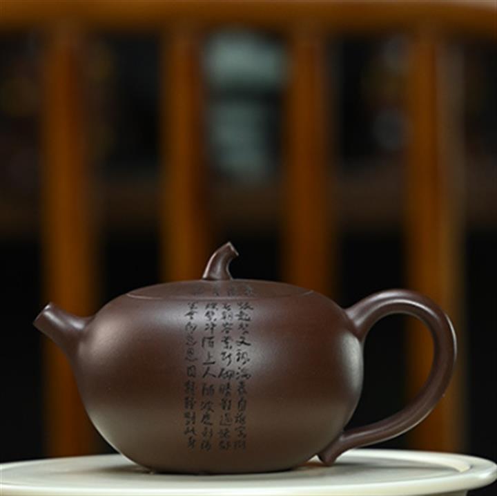 200cc原礦文革紫泥茄瓜微刻茶壺POT8346