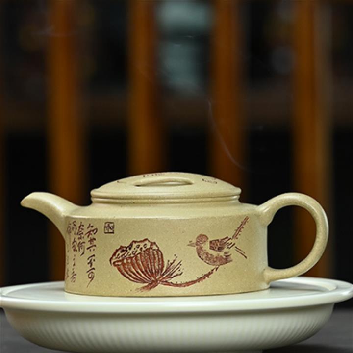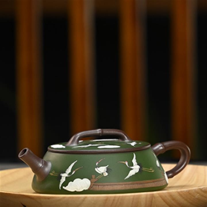 180cc原礦綠泥牛蓋刻繪茶壺POT8351