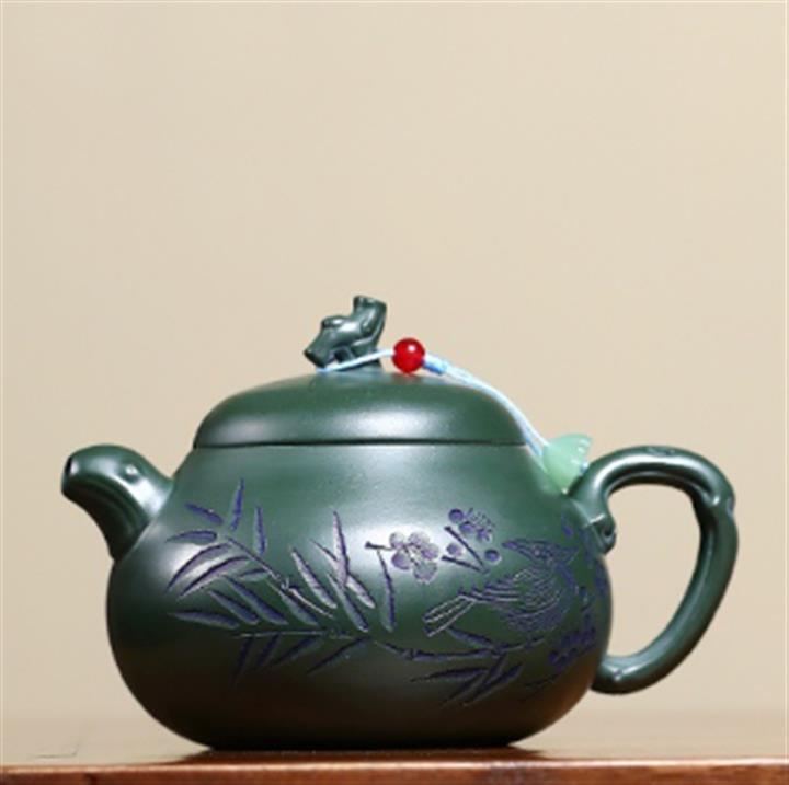 250cc原礦綠泥竹林清影泡茶壺POT9419