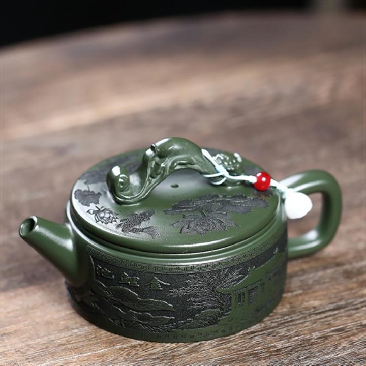 200cc原礦綠泥荷塘聽雨仿生茶壺POT8082