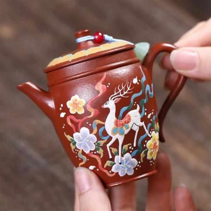110cc原礦粗砂朱泥泥繪神鹿竹筒茶壺POT8086