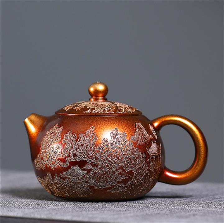 450cc原礦紫泥滿刻大德鐘茶壺POT8290