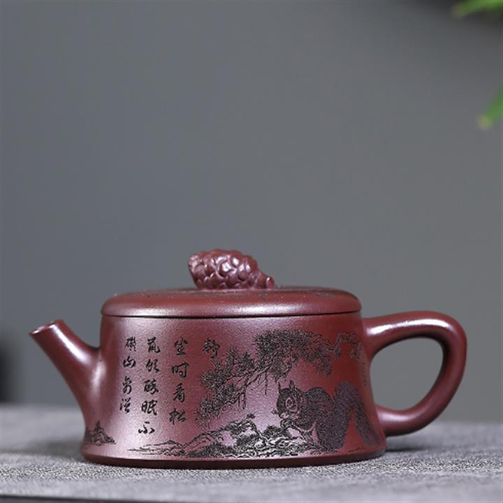 300cc原礦老紫泥碩果累累松鼠漢瓦茶壺POT8287