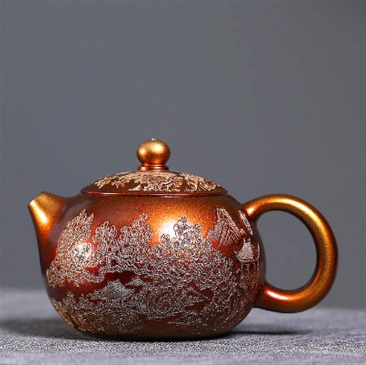 340cc原礦紫泥刻繪山水仿古茶壺POT8482