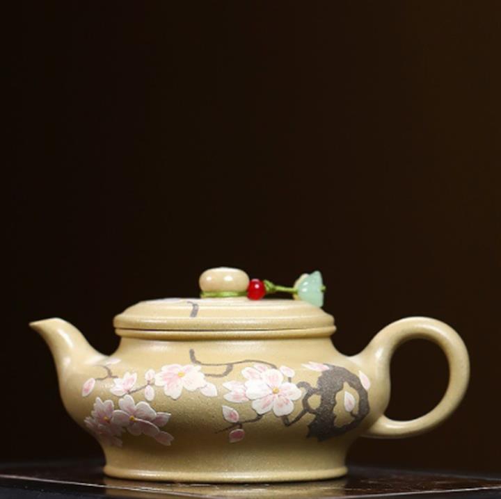180cc原礦本山綠泥梅花虛扁泡茶壺POT9572