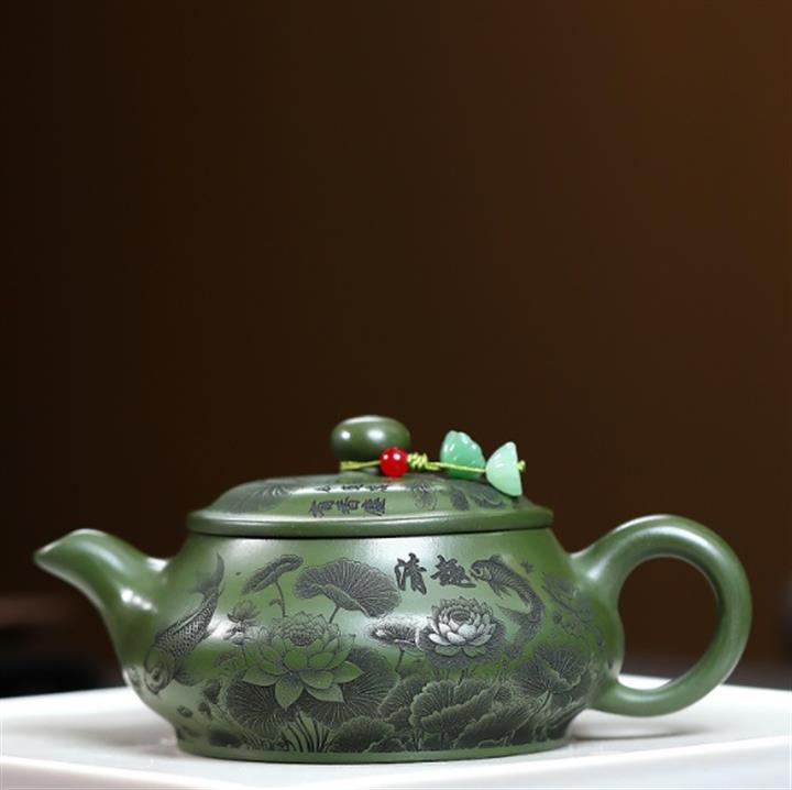 240cc原礦優質綠泥荷塘清趣明爐泡茶壺POT9575