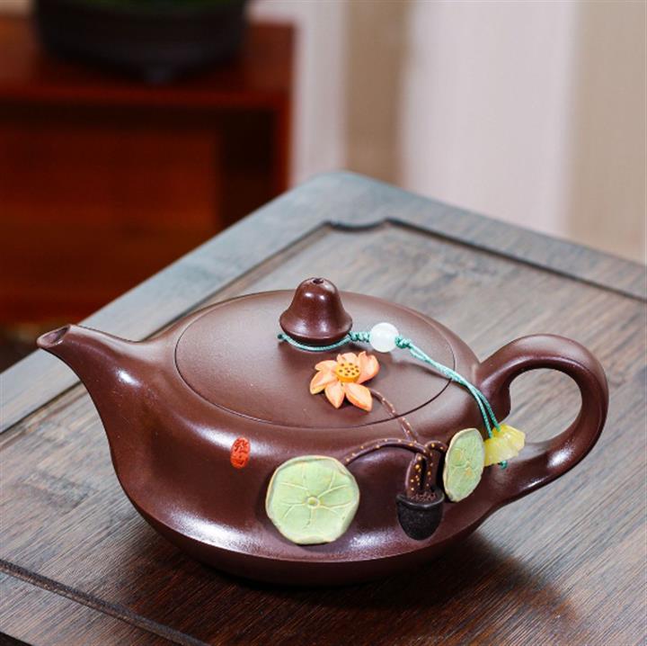 280cc原礦百目紫泥曲壺荷塘月色茶壺POT8654