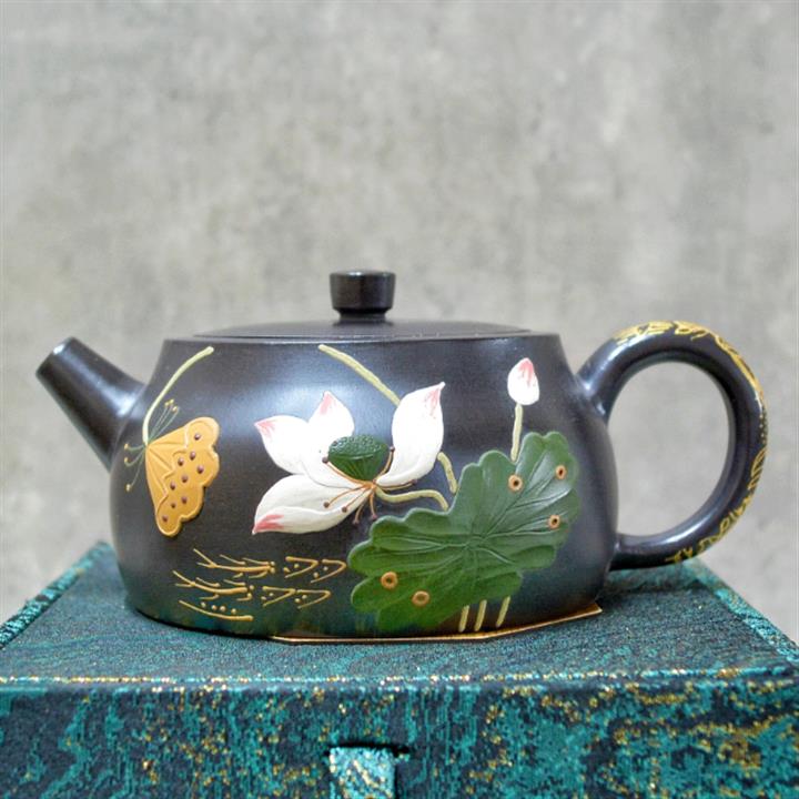 270cc原礦玄鐵石黃荷韻井欄泡茶壺POT8659