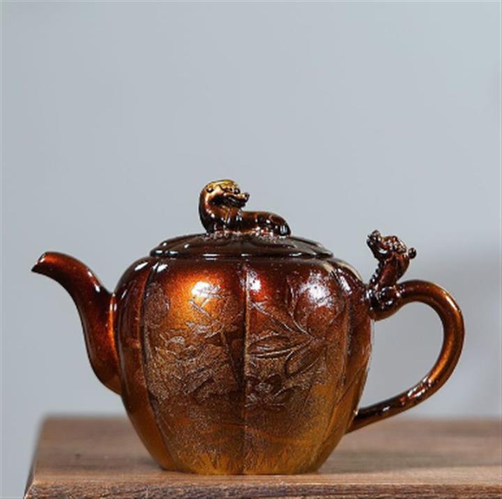 50cc原礦老紫泥金玉滿堂炮嘴漢瓦茶壺POT8795