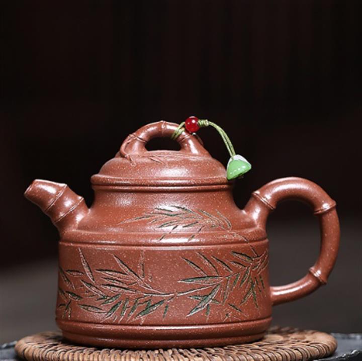 250cc原礦紅降坡虛懷竹影竹鼎泡茶壺POT9383