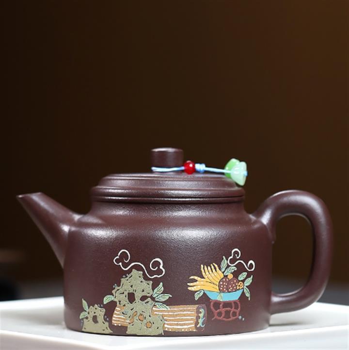 380cc原礦紫玉金砂紫玉竹影明爐泡茶壺POT9626