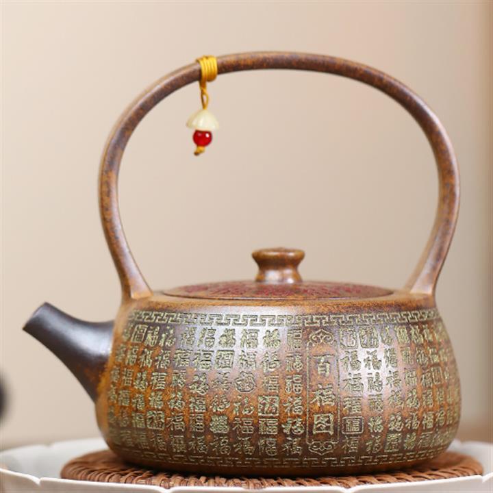 340cc龍骨金砂高溫柴燒百福提梁遇水變色泡茶壺POT9630