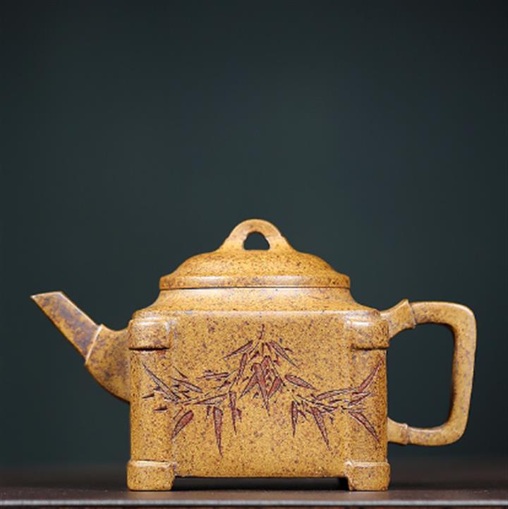 240cc古龍窯柴燒龍骨金砂四方刻竹泡茶壺POT9631