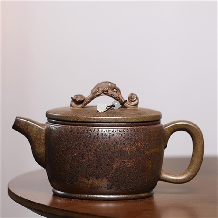 800cc原礦古銅泥滿刻踏雪尋巔茶壺POT8324