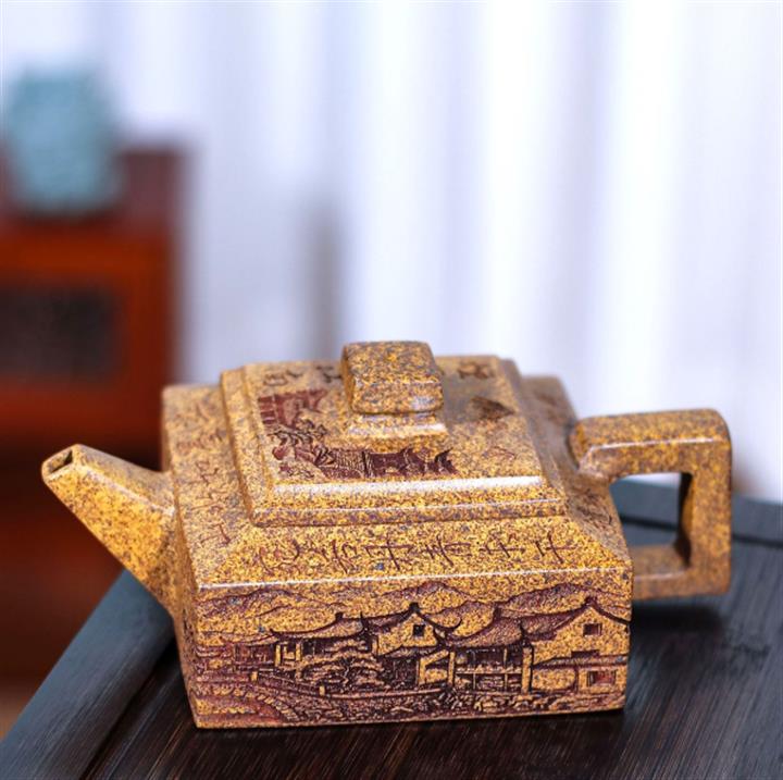 250cc龍骨金砂四方竹石孔雀東南飛茶壺POT8331